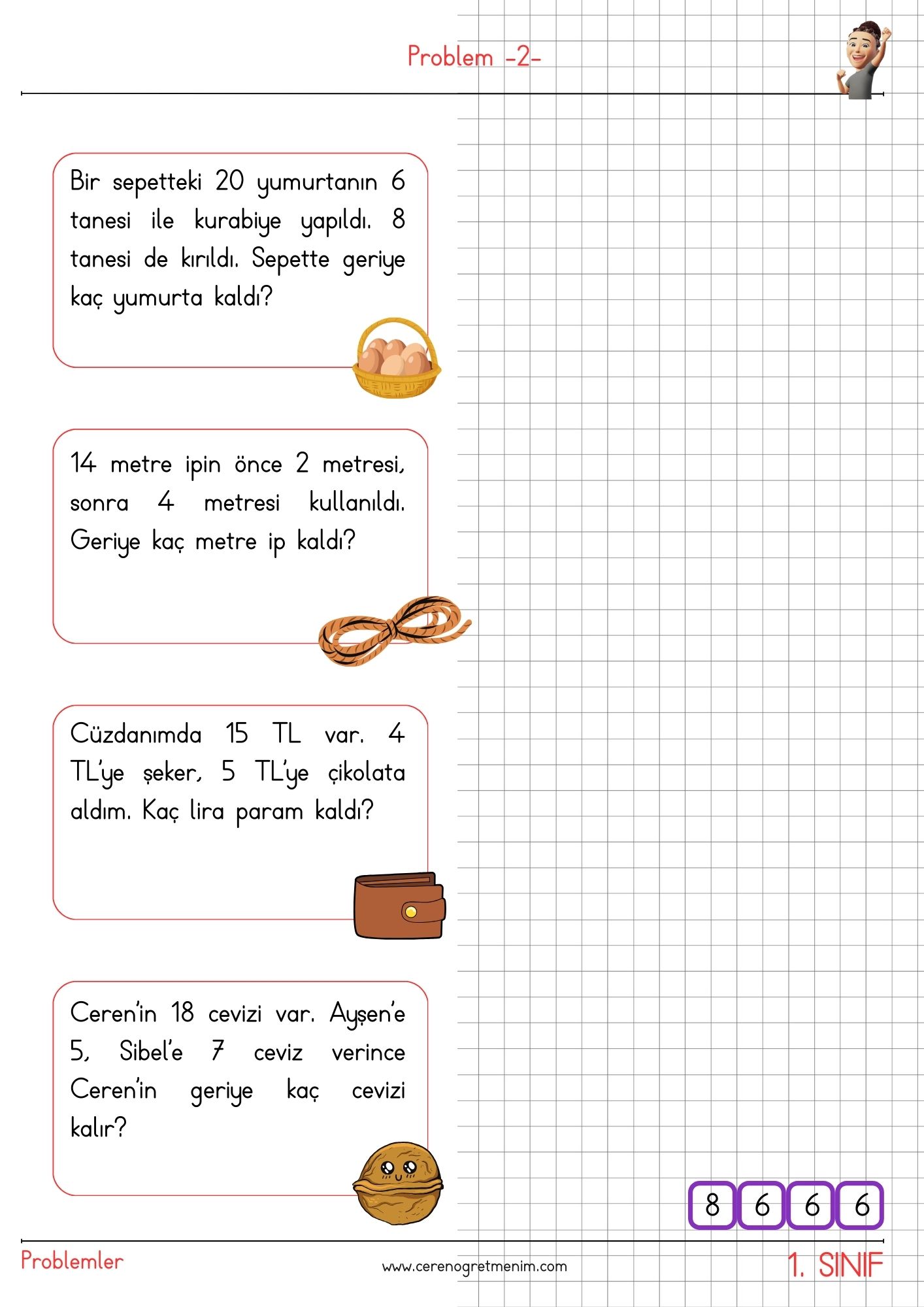 Karışık İşlemlerYazan Ceren Öğretmen / 19 Mart 2026 Matematik problemleri ile çocukların okuduğunu anlama ve işlem becerilerini geliştirin! Eğlenceli, öğretici ve seviyeye uygun problem etkinliklerini keşfedin. Problem -2- karışık 2İndir