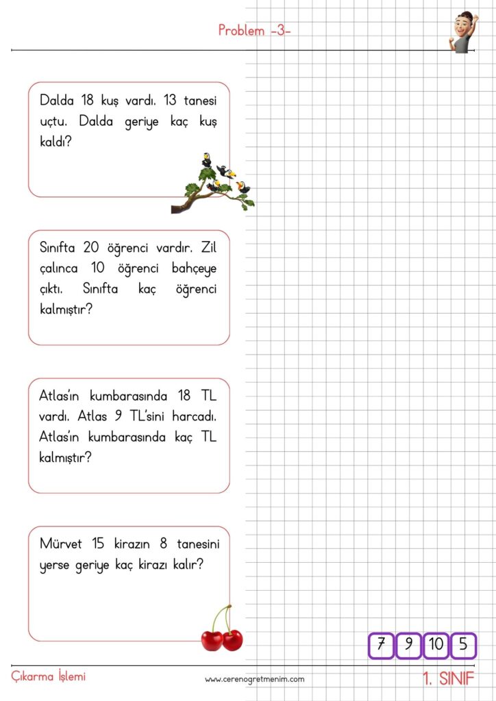 Çıkarma işlemi için eğlenceli ve öğretici etkinlikler! Çocukların matematik becerilerini geliştiren kolay ve anlaşılır çalışma sayfalarını keşfedin Problem -3-