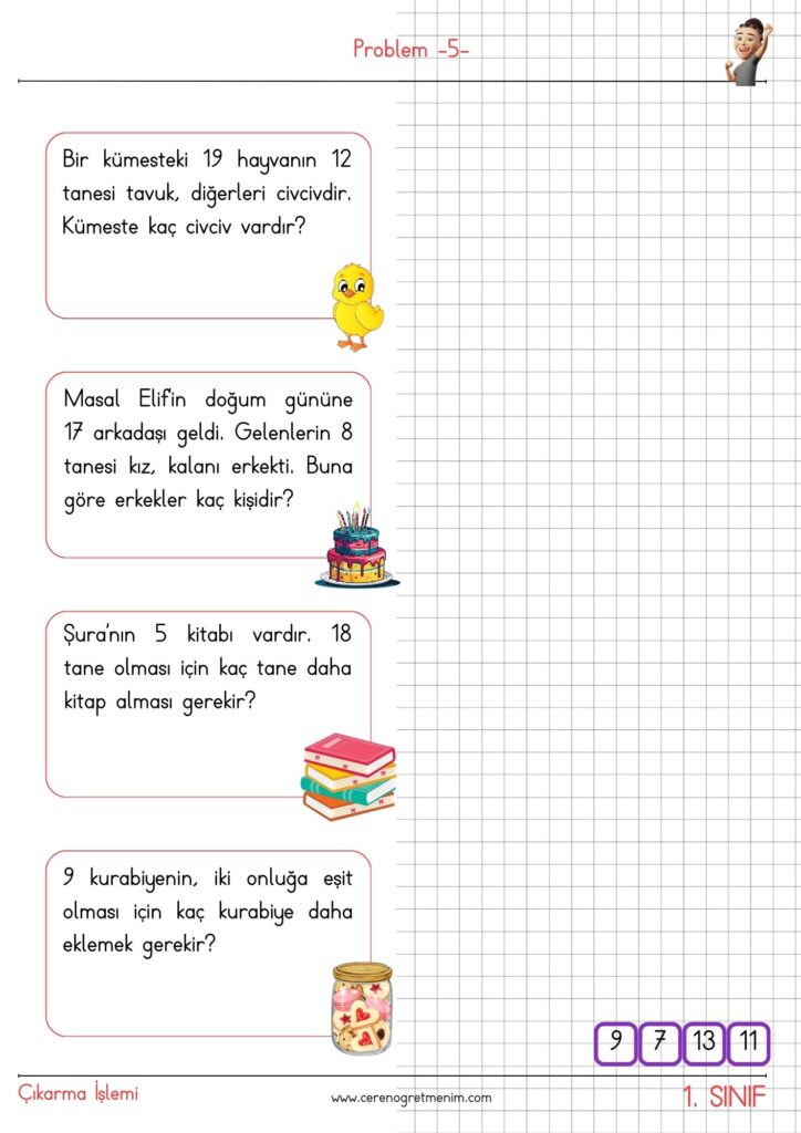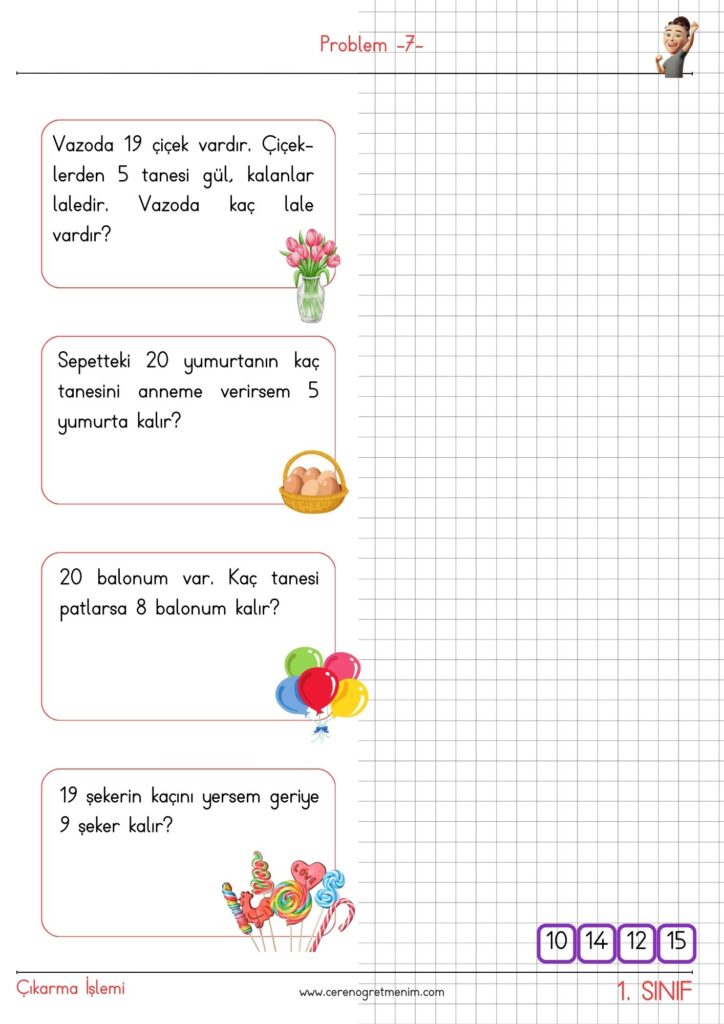 Çıkarma işlemi için eğlenceli ve öğretici etkinlikler! Çocukların matematik becerilerini geliştiren kolay ve anlaşılır çalışma sayfalarını keşfedin Problem -7-