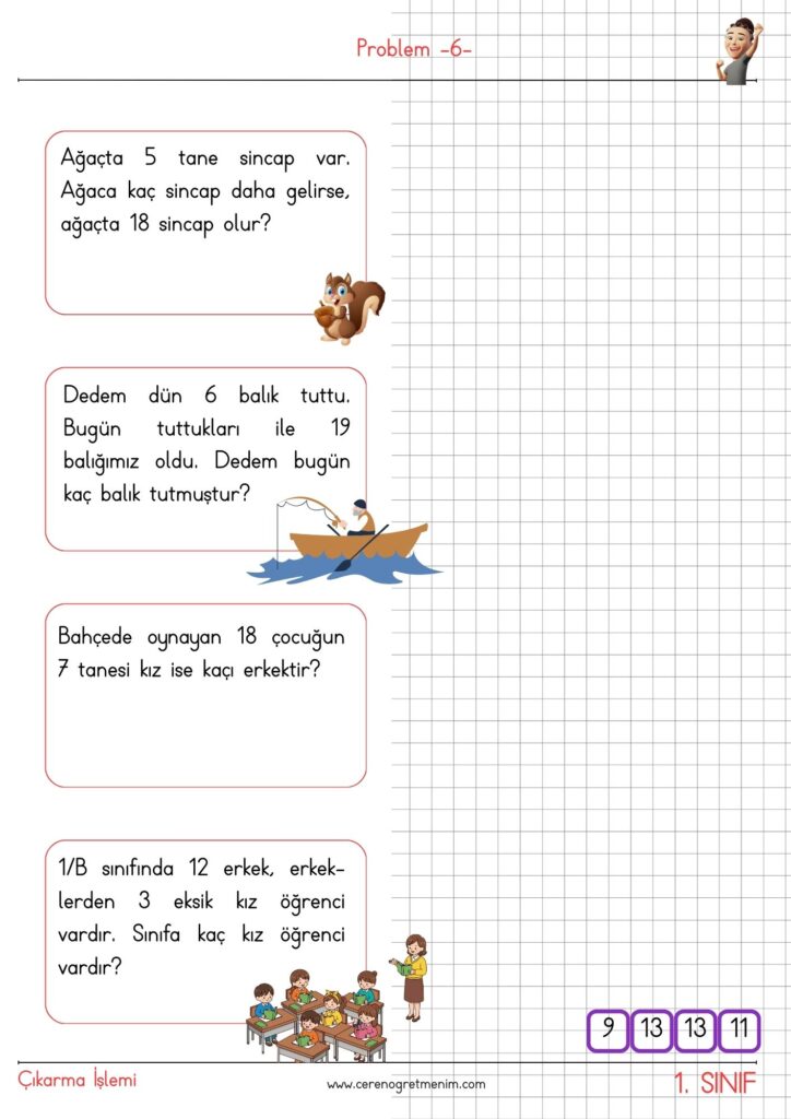 Çıkarma işlemi için eğlenceli ve öğretici etkinlikler! Çocukların matematik becerilerini geliştiren kolay ve anlaşılır çalışma sayfalarını keşfedin Problem -6-