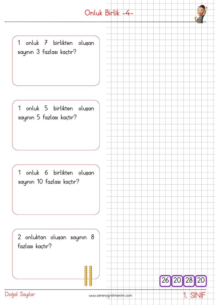 Onluk ve birlik problemleriyle sayı kavramını güçlendirin. Basit, eğlenceli ve öğretici etkinliklerle matematiği kolay öğrenin! Onluk Birlik -4-