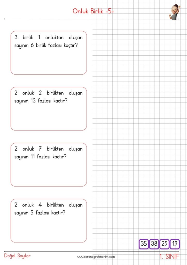 Onluk ve birlik problemleriyle sayı kavramını güçlendirin. Basit, eğlenceli ve öğretici etkinliklerle matematiği kolay öğrenin! Onluk Birlik -5-