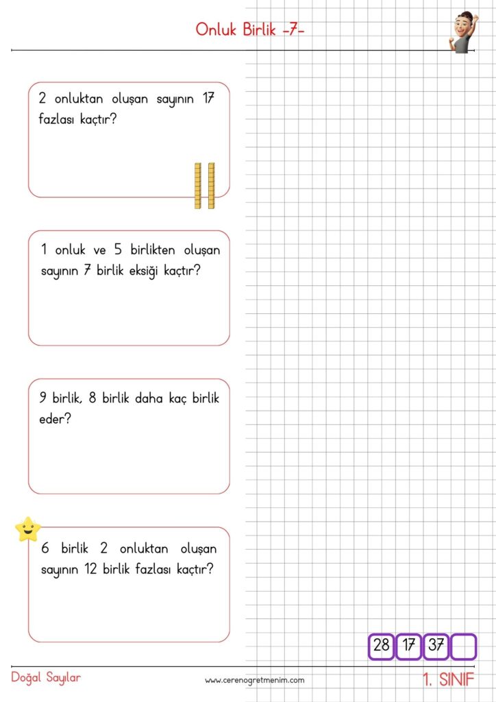 Onluk ve birlik problemleriyle sayı kavramını güçlendirin. Basit, eğlenceli ve öğretici etkinliklerle matematiği kolay öğrenin! Onluk Birlik -7-