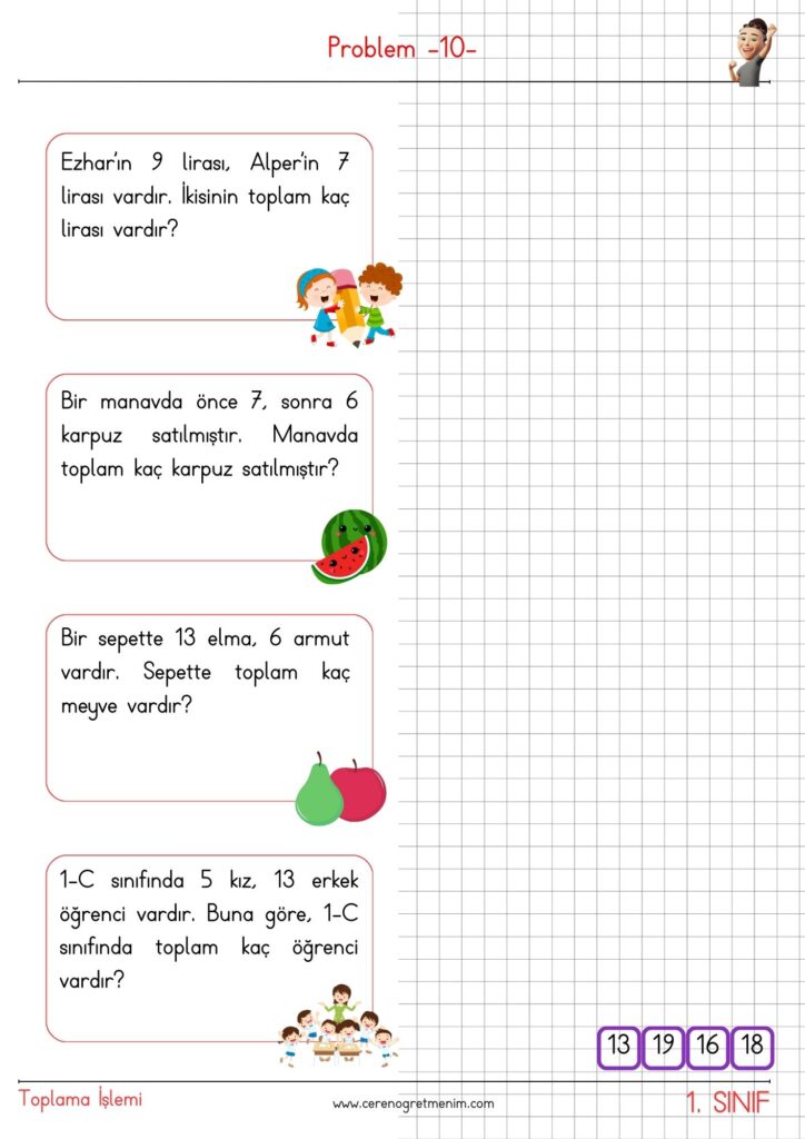 Toplama işlemi için eğlenceli ve öğretici etkinlikler! Çocukların matematik becerilerini geliştiren kolay ve anlaşılır çalışma sayfalarını keşfedin. Problem -10-
