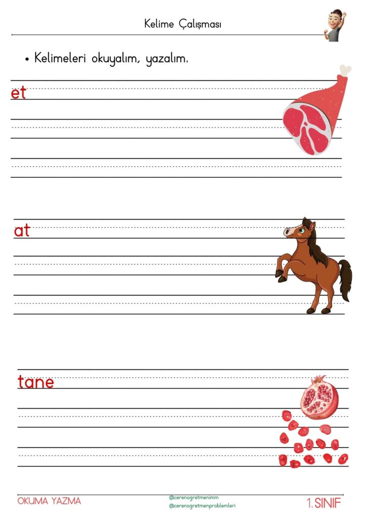 Sesler ile kelime çalışmaları, öğrencilerin okuma becerilerini geliştirir. Heceleri birleştirerek kelime oluşturmayı eğlenceli etkinliklerle kolayca öğrenin!