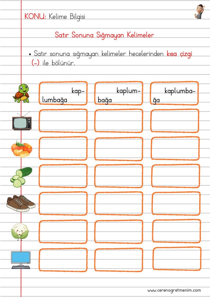 Satır sonuna sığmayan kelimeler nasıl bölünür? Heceleme kuralları, örnekler ve ilkokul öğrencilerine uygun etkinliklerle satır sonu kurallarını kolayca öğrenin. Yazım