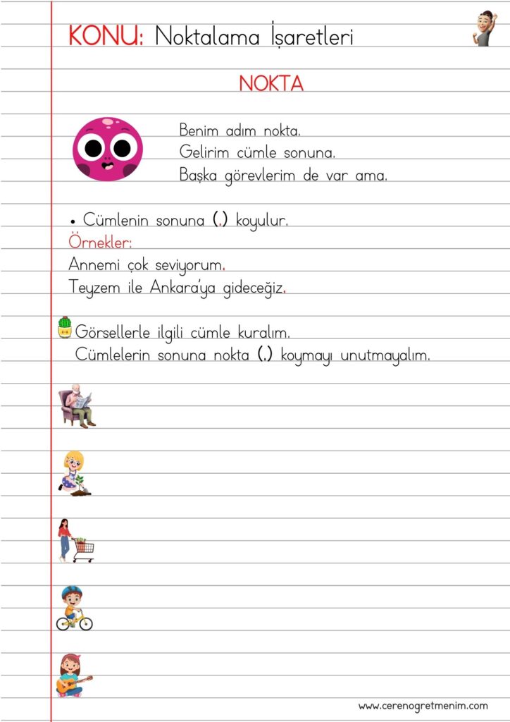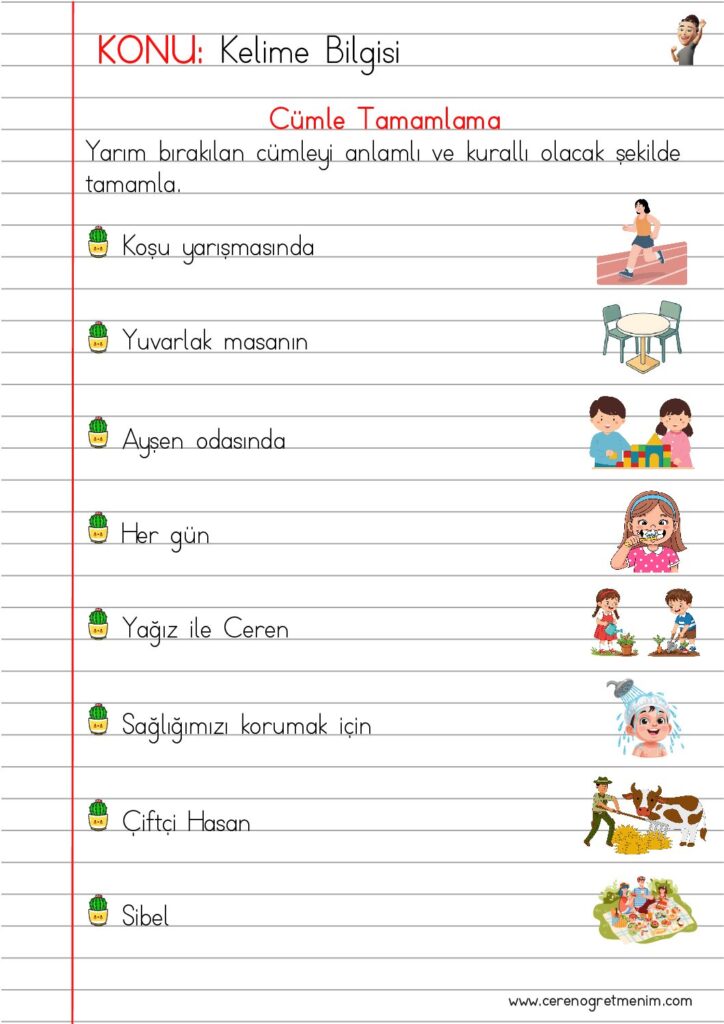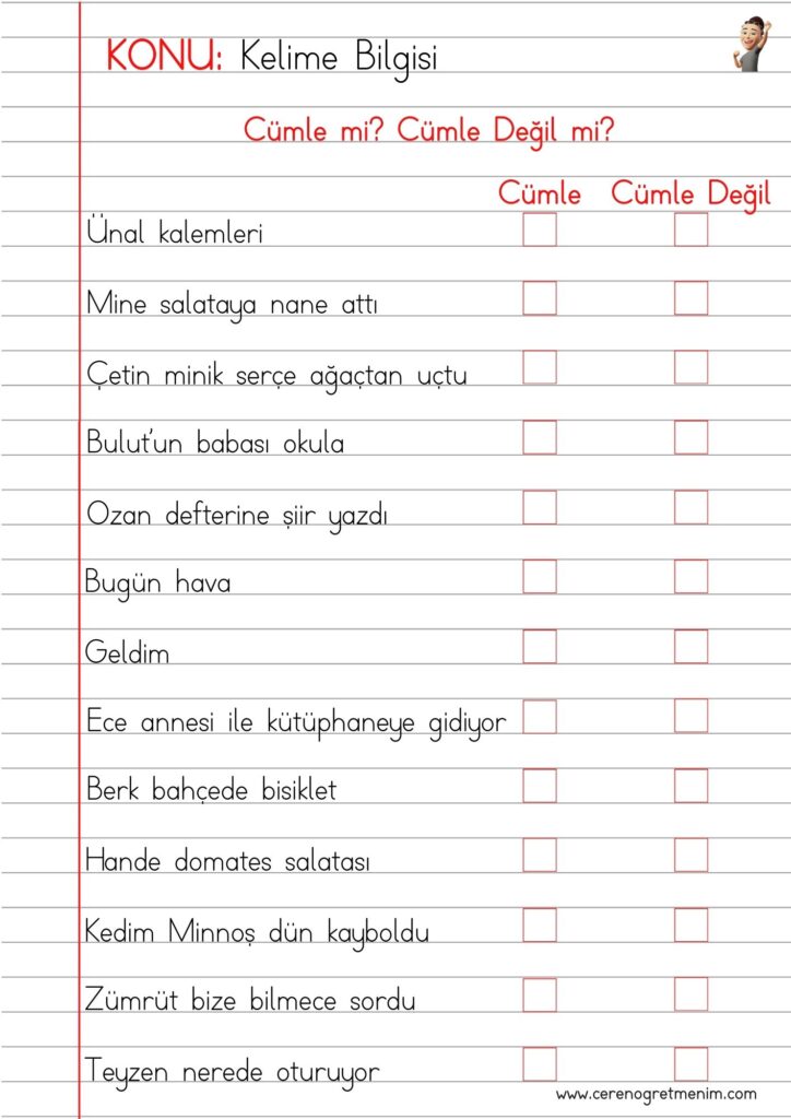 Cümle bilgisi defter notu ve etkinlikleri ile öğrenciler cümlenin ne olduğunu öğrenir, anlamlı ve kurallı cümle kurma becerilerini geliştirir.