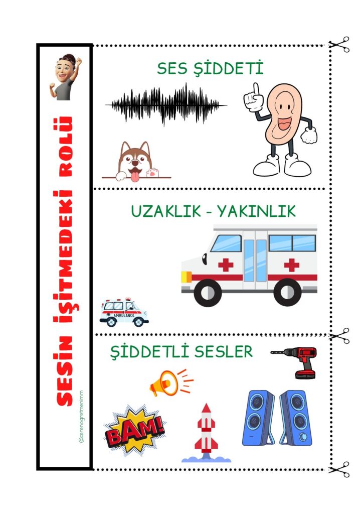 “Sesin İşitmedeki Rolü” konusu için defter notu ve etkinlikler. Sesin duyma ve iletişimdeki önemini öğrenciler için anlaşılır ve eğlenceli şekilde