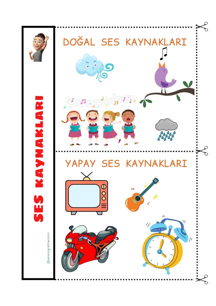 “Ses Kaynakları” konusu için defter notu ve etkinlikler. Doğal ve yapay ses kaynaklarını öğrenciler için anlaşılır ve eğlenceli şekilde öğrenin.