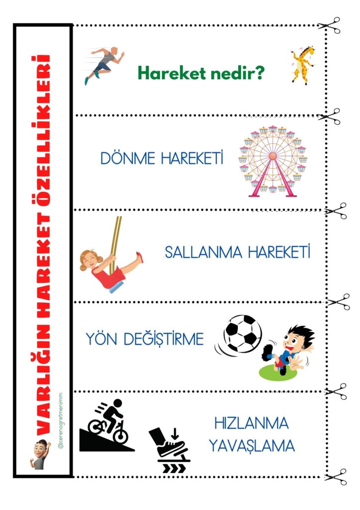 Varlıkların hareket özellikleri konusu için defter notu ve etkinlikler. Hızlanma, yavaşlama ve yön değiştirme gibi hareketleri kolay ve anlaşılır şekilde